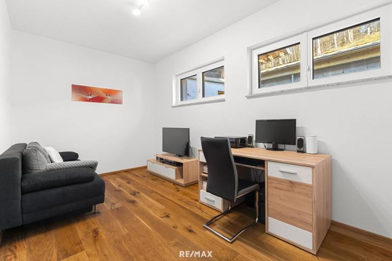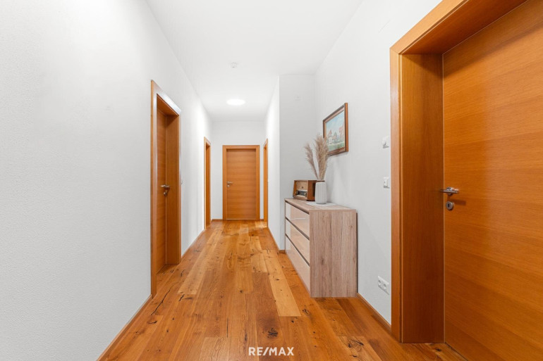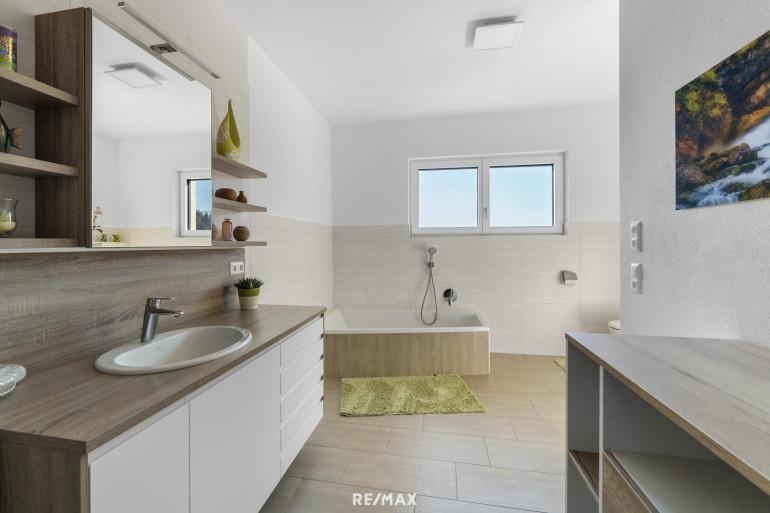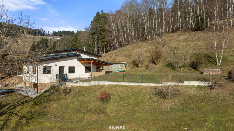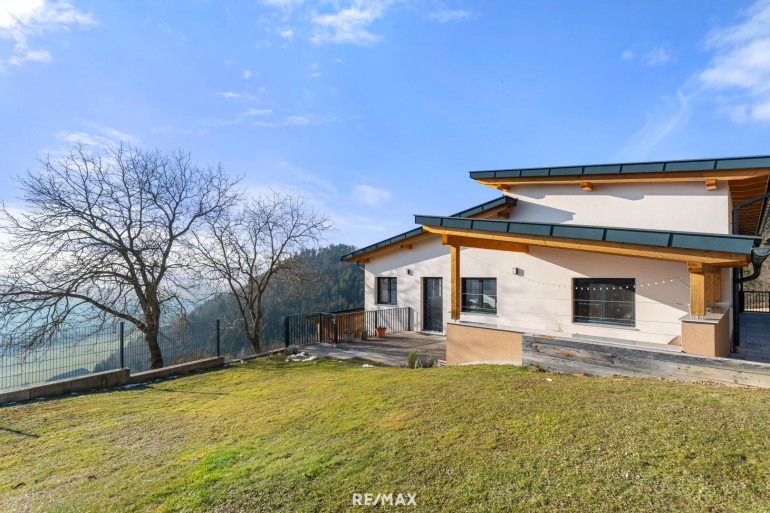 Die Immobilie ist exklusiv und modern möbliert. Das Haus ist ausgestattet mit hochwertigen Internorm-Fenstern mit 3-fach-Verglasung, elektrischen Jalousien und Insektenschutz. Zwei Tageslichtspots im Flur sorgen für angenehmes Licht. Beheizt wird das Haus mittels einer Pellets-Zentralheizung und die installierten Raumthermostate ermöglichen eine perfekte Regulierung des Raumklimas. Zur Warmwasseraufbereitung wurde eine Solaranlage errichtet. Große Fensterfronten holen die Natur ins Haus und eröffnen einen unvergleichlichen Blick auf die umliegende Landschaft. Das Badezimmer ist mit Badewanne und barrierefreier Dusche ausgestattet. Eine teilüberdachte Terrasse mit ca. 48,74 m² schafft einen perfekten Wohlfühlort umgeben von herrlicher Natur.