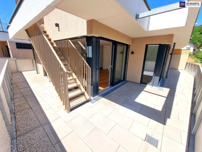 Ein Platz, der mehr kann als wohnen. Geniale Neubauwohnung mit WOW-Effekt! Riesiger Balkon und Terrasse + Privater Dachgarten + Grün wohin das Auge reicht + Luftwärmepumpe!