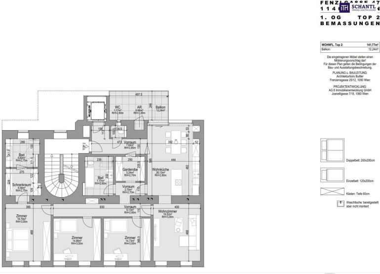 Wohnfläche: ca. 141,77m² + Balkon: ca. 12,24m² + Kellerabteil: ca. 3,78m²