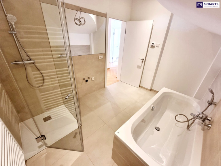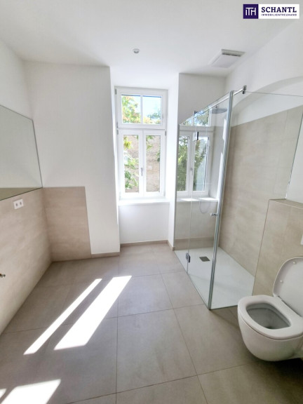 Ihre neue Wohnung wird Sie restlos begeistern und teilt sich in einen geräumigen Vorraum, eine separate und sehr geräumige Garderobe inkl. Waschmaschinenanschluss, ein separates WC mit Handwaschbecken und Fenster, ein großes Familien-Badezimmer mit Dusche, Badewanne und 2.WC, 2 getrennt begehbare und geräumige Schlafzimmer und ein großes Master-Bedroom mit angeschlossenem Schrankraum und eigenem Badezimmer mit Dusche, 3.WC und Fenster mit Blick in den grünen Innenhof, sowie das Herzstück der Wohnung - einen Wohn-Essbereich mit Zugang zum Traum-Balkon. Der Wohn-Essbereich ist großzügig gestaltet und teilt sich in ein Esszimmer mit vorbereiteten Küchenanschlüssen und ein direkt verbundenes, separates Wohnzimmer.