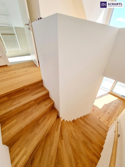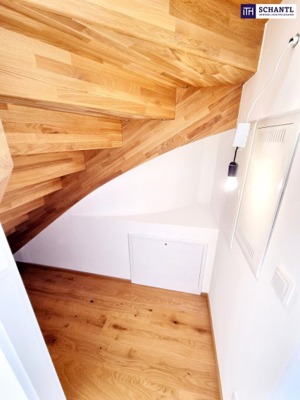 Ihre neue Wohnung wird Sie restlos begeistern und teilt sich in einen kleinen Vorraum mit praktischem Schrank- oder Abstellraum (Garderobe), einen lichtdurchfluteten Wohn-Essbereich mit Zugang zur Traumterrasse mit Fernblick, einen weiteren, raffinierten Abstellraum unter dem Treppenaufgang, ein Schrankraum welcher ideal Platz für einen Kasten bietet, ein stylisches Badezimmer mit Walk-In Dusche und WC sowie ein gemütliches Schlafzimmer.
