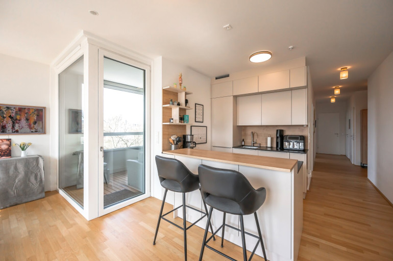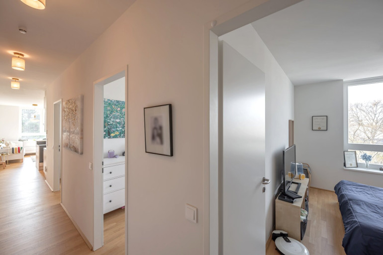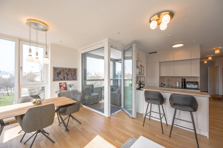 Die Wohnung liegt in einer begehrten Gegend des 22. Bezirks mit exzellenter Infrastruktur und internationalen Einrichtungen.