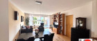 - Koch-/Ess-/Wohnbereich - Durch die große Fenster- und Terrassentürenfront wird der schöne Raum herrlich mit viel Tageslicht durchflutet. Im gesamten Bereich wurde ein hochwertiger Holzboden in Eiche verlegt. Die ca. 6 m² große, offene Küche mit Fenster wurde in einer großen Nische des Raumes zum angrenzenden Essbereich platziert. So wurde geschickt, trotz optischer Trennung, eine schöne Verbindung zwischen diesen beiden Bereichen geschaffen. Das gemütliche Wohnzimmer mit Fernsehwand befindet sich zwischen Essplatz und Fensterfront. Von hier aus führt eine Holztreppe in die nächsten Etagen des Hauses.