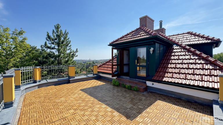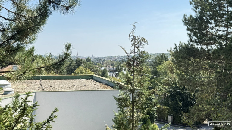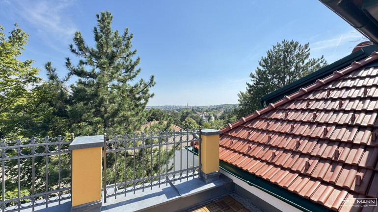 Das Dachgeschoss zählt zu den eindrucksvollsten Bereichen der Liegenschaft. Der weite Blick über Wien verleiht dieser Ebene eine besondere Wohnqualität und macht sie zu einem idealen Rückzugsort innerhalb des Hauses.