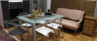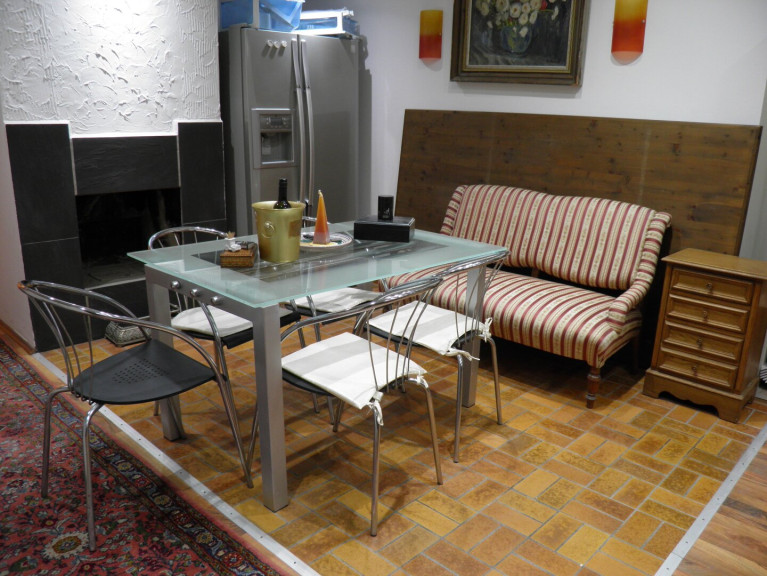 - großer, gemütlicher Hauptraum mit offenem Kamin und Side-by-Side-Kühlschrank