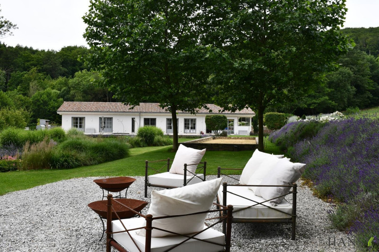 Das Anwesen besteht aus zwei verbundenen Gebäuden, von denen das eine im Jahr 2012 zur Gänze neu erbaut wurde, während der andere Teil, ursprünglich aus dem Jahre 1799, im gleichen Jahr komplett saniert wurde. Die Außenanlagen wurden ebenfalls zu dieser Zeit komplett neugestaltet und u.a. im Jahr 2016 zu den 50 Schönsten Privatgärten Europas gekürt.