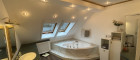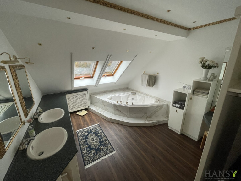 Im OG mit einen wohnlichen Vorraum, 2 Schlafzimmer, 2 Begehbare Garderoben, wie einen sehr exklusiven Badezimmer mit Eckbadewanne mit Wasserfall sowie ein separates WC. Das Dachgeschoß wäre ausbaubar.