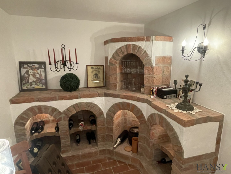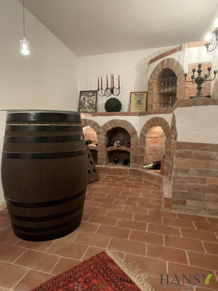Der massive Stiegen Abgang führt zum großen Weinkeller ( mit alten Ziegel gemauerter Weinzisternen zur Lagerung der Kostbarkeiten und Verkostungsraum) sowie auch zum bewohnbaren Keller mit großem Gästezimmer des weiteren ein Büro und eigenen Schuhraum.