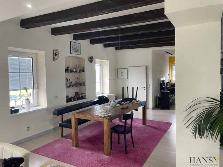 Dieses modern gestaltete, beeindruckende Loft befindet sich in einer ehemals alten Mühle aus dem Jahr 1930, idyllisch an einer Wehr gelegen und wurde 2014 kernsaniert, 2020 wurden neue Fenster, dreifachverglast, eingebaut. Es bietet auf ca. 205 m² Wohnfläche für ein einzigartiges Wohn- und/oder Arbeitsgefühl.