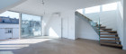 - Die Wohnebene: Das Herzstück ist der lichtdurchflutete Wohn-Essbereich mit edlem Eichen-Fischgrätparkett. Die riesigen Glasflächen lassen die Grenze zwischen Innen und Außen verschwimmen und führen direkt auf den Balkon.