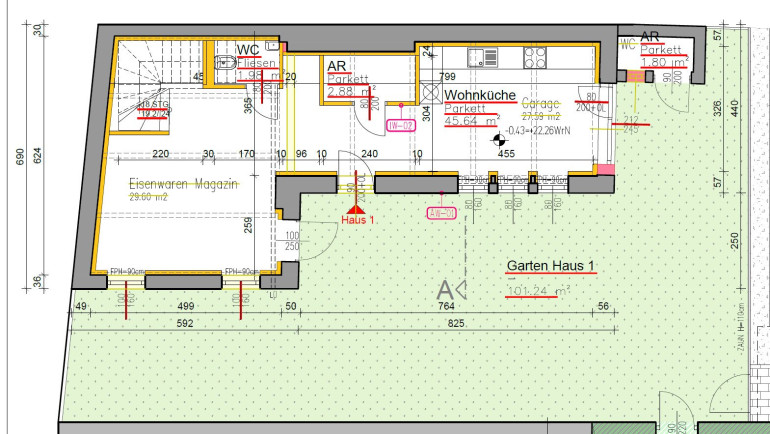 Raumhöhe nach Umbau Hofhaus 2,88m im EG und 3,66m im OG