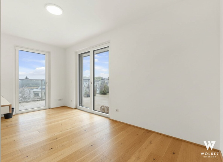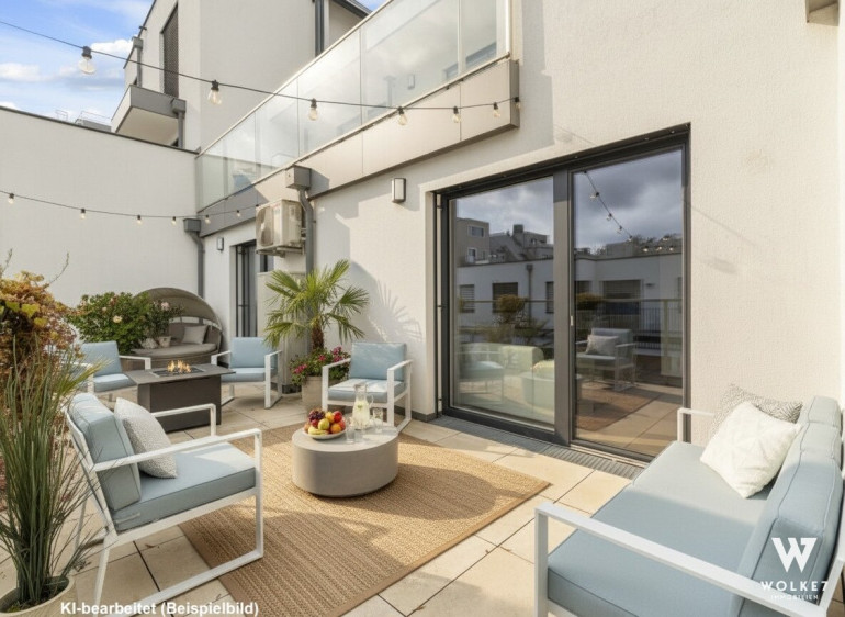 Ein besonderes Highlight sind die beiden großzügigen Terrassen mit insgesamt ca. 91 m², die den Wohnraum ideal ins Freie erweitern. Dank Süd- und Westausrichtung genießen Sie hier Sonne von Mittag bis in die Abendstunden – perfekt für entspannte Stunden, Outdoor-Dining oder stilvolle Abende im Freien. Die Wohnung besticht zudem durch ihre hervorragende Energieeffizienz und niedrige Betriebskosten. Ein Tiefgaragenplatz mit direktem Liftzugang kann optional um € 40.000 erworben werden und rundet dieses hochwertige Gesamtpaket optimal ab.