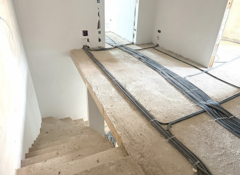 In diesem Fall werden sämtliche noch fehlenden Ausstattungs- und Fertigstellungsarbeiten übernommen. Dazu zählen insbesondere Innenböden, Innentüren, Sanitäranlagen, Terrassenplatten im Erd- und Obergeschoss, die Einfahrt samt Pflasterung und elektrischem Einfahrtstor.