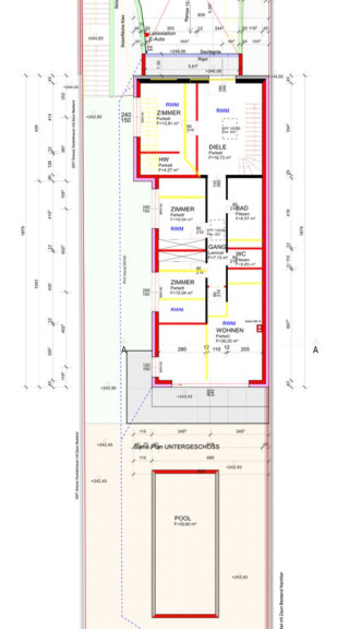 Der Außenbereich setzt das luxuriöse Wohngefühl konsequent fort und wird zu einem privaten Rückzugsort unter freiem Himmel. Die großzügige Terrasse mit hochwertigen Feinsteinzeugplatten bietet den idealen Rahmen für entspannte Stunden, gesellige Grillabende mit Freunden oder lange Sommerabende in stilvoller Atmosphäre. Der Pool mit 8 x 4 Metern mit Gegenstromanlage lädt zum Abschalten und Erholen ein. Der Garten bietet zudem ausreichend Platz für individuelle Gestaltung – von liebevoll angelegten Hochbeeten über gemütliche Lounge-Bereiche bis hin zu persönlichen Wohlfühloasen, die den Alltag vergessen lassen.