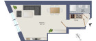 - Eingangsbereich: Neuwertiger Küchenblock mit direktem Zugang zu Bad und Hauptzimmer.