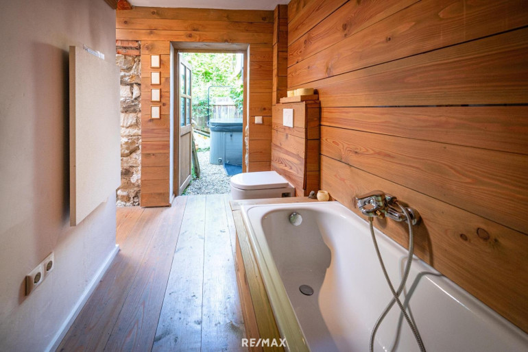 Willkommen bei diesem bezaubernden Sacherl, das inmitten der Naturidylle zur Erholung einlädt. Das rustikale Erdgeschoss verzaubert mit traditionellem Charme und wird erfolgreich über Airbnb vermietet. Ein eigener Eingang ist vorhanden. Es bietet 2 Schlafzimmer und ein modernes Bad mit Ausgang auf die Terrasse, wo schon der Jacuzzi auf Sie wartet.
