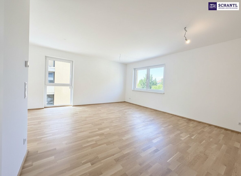 Weiters besticht die ca. 87 m² große Wohnung durch ihren effizienten Grundriss sowie die offene Wohnraumgestaltung. Alle Zimmer sind in Richtung Nachmittagssonne ausgerichtet. Hier bleiben definitiv keine Wünsche offen!