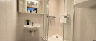 Hochwertige Ausstattung mit Parkett und Fliesen.