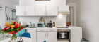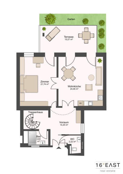 - Helle Wohnküche mit direktem Zugang zur ruhigen, begrünten Terrasse