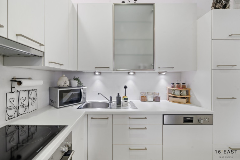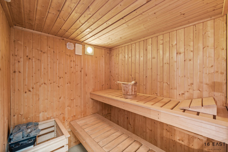 Gas, Fußbodenheizung, Einbauküche, Wohnküche / offene Küche, Personenaufzug, Nordbalkon, Badewanne, Dusche, Sauna
