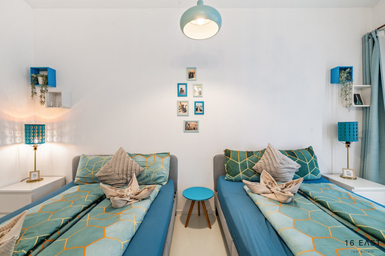 Beide Wohnungen werden unmöbliert übergeben; die Küchen, Bäder, die Sauna sowie der Whirlpool verbleiben jedoch in den Einheiten.