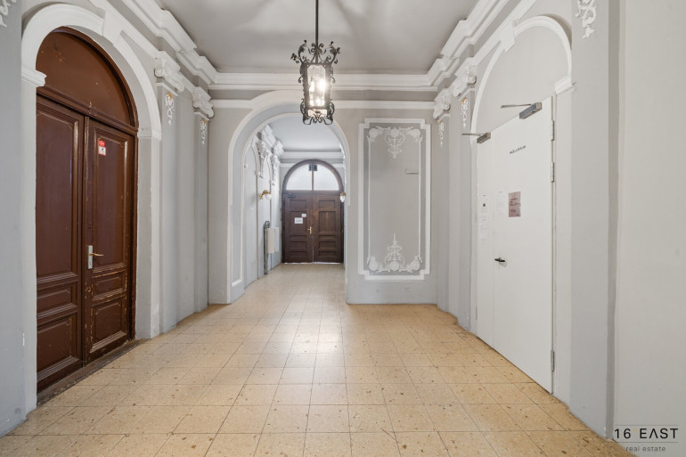 Die Wohnung befindet sich im Hochparterre des sehr ruhigen, hofseitigen Trakts des Hauses und erstreckt sich über zwei Ebenen, die auch vollständig separat voneinander genutzt werden können. Dank der durchdachten Raumaufteilung sowie zweier separater Eingänge und Stromzähler bietet sie vielfältige Nutzungsmöglichkeiten – ideal für die Kombination von Wohnen und Arbeiten unter einem Dach oder zur Trennung unterschiedlicher Bereiche (z. B. Wohnen, Büro, Wellness oder Atelier im unteren Geschoss).