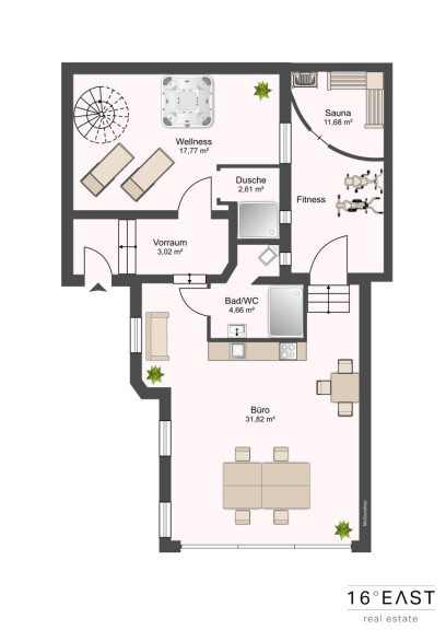 - Überdachter Lichthof für Fitness- und Wellnessbereich mit Sauna