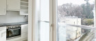 Diese sehr schön geschnittene, teilweise zentral begehbare Wohnung mit ca. 56 m2 Wohnfläche beinhaltet einen südseitig ausgerichteten, geräumigen Wohn-Ess-Bereich mit 'Französischem Balkon' sowie eine angrenzende Küche, ein nordseitig, ruhig gelegenes Schlafzimmer, ebenso mit 'Französischem Balkon', ein Wannenbad, eine separate Toilette und ein Vorzimmer.