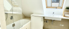 + Wannenbad mit Doppelwaschbecken, Handtuchwärmer, Toilette und Waschmaschinenanschluss