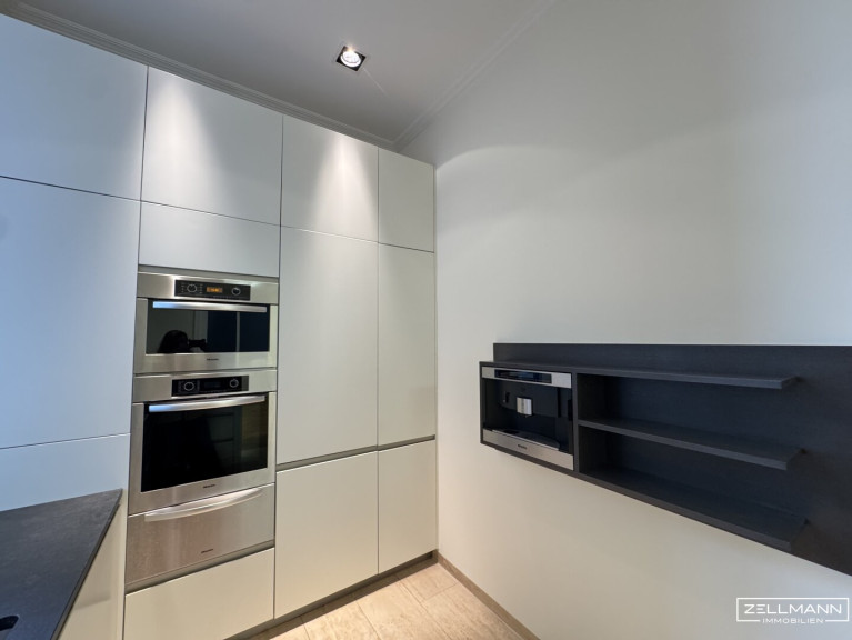 Die separate Designerküche mit integriertem Weinkühler sowie das angrenzende Esszimmer bieten den idealen Rahmen für gesellige Abende oder stilvolle Empfänge. Hochwertige Materialien und durchdachte Details ziehen sich durch alle Räume und unterstreichen den exklusiven Charakter dieser Immobilie.