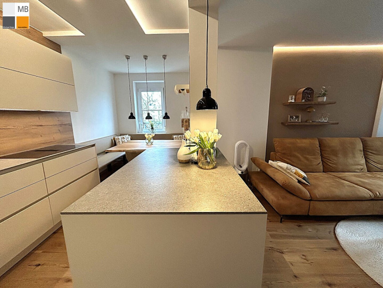 Diese offene, neuwertige Wohnung wurde vor 2 einhalb Jahren bis aufs Bad komplett modernisiert, hochwertig ausgestattet und ist ein echtes Wohlfühlzuhause für Jungfamilien, Paare oder alle, die Ruhe und gute Infrastruktur schätzen. Der Eigengarten liegt schützend rund um diese Wohnung herum und fast komplett uneinsichtig.