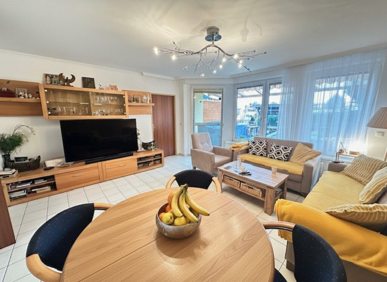Der sonnige Garten bietet ausreichend Platz zum Spielen, Entspannen oder Grillen. Die angrenzende Terrasse ist mit einer tollen Markise mit Schutzglas ausgestattet – ideal für jede Wetterlage.