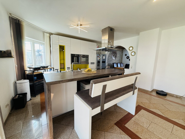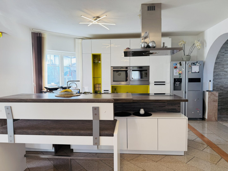 Schon beim Betreten des Hauses spürt man die angenehme Wohnatmosphäre: Der offene Wohn- und Essbereich bildet das Herzstück der Immobilie und bietet viel Platz für gemeinsame Stunden. Die moderne Küche der Marke Dan-Küche fügt sich perfekt in das Gesamtbild ein und lässt keine Wünsche offen.