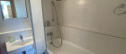 Vom Wohnzimmer gelangen sie in ein freundliches Schlafzimmer, für Stauraum bietet ein zweizeiliger raumhoher Schiebetüreneinbauschrank im Schrankraum, durch den sie ins anschließende Badezimmer gelangen. Das großzügige Bad verfügt über eine Badewanne, Waschtisch und Waschmaschinen Anschluss und diverse Kästchen.