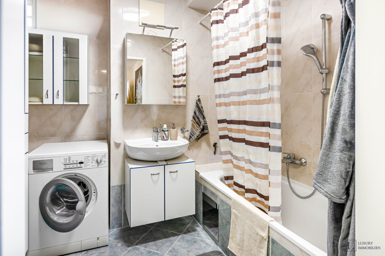 Die Wohnung befindet sich in einem sehr guten Zustand und wird komplett möbliert vermietet; die vorhandenen Möbel sind in der Miete inkludiert. Eine Klimaanlage sorgt für ein angenehmes Raumklima. Sämtliche Fenster sind zum ruhigen Innenhof ausgerichtet, was für eine besonders angenehme Wohnatmosphäre sorgt. Zusätzlich gehört ein geräumiges Kellerabteil zur Wohnung, das weiteren Stauraum bietet.
