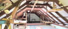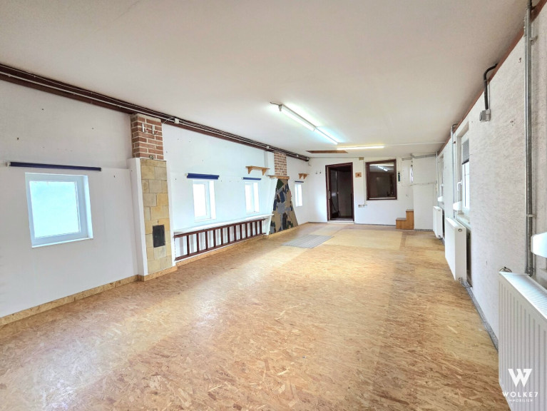 Obergeschoß - Neubau: 3 Zimmer (zwischen ca. 7,70 m2 und 18,56 m2), WC, Diele, großer Raum mit über 40 m2, Vorraum zum Dachboden sowie Dachboden selbst