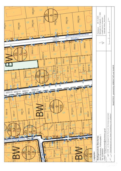 Bauland-Wohngebiet | Bauklasse I, II, 35% Bebbauungsdichte | geschlossene Bauweise