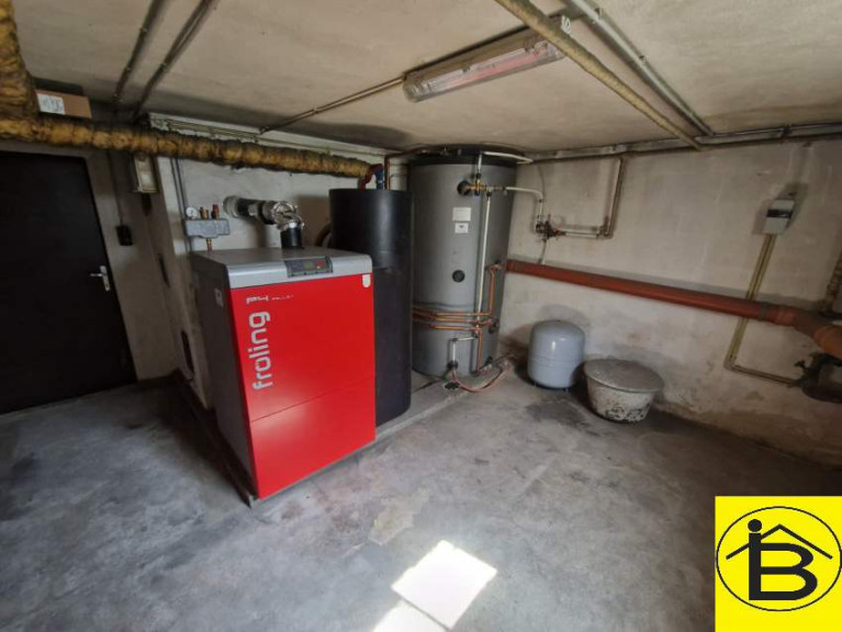 Das Haus ist voll unterkellert und wird mit einer Pelletszentralheizung beheizt.