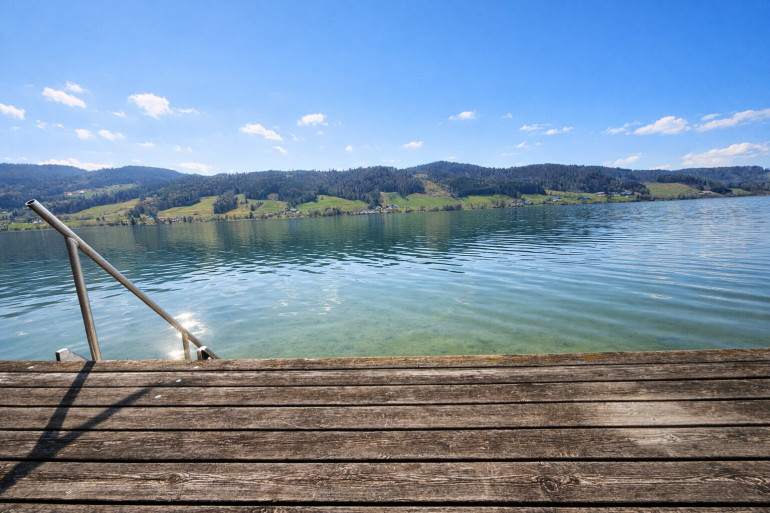 Das Highlight: eine private Badehütte mit Badeplattform am Irrsee – ein Ort für ruhige Stunden, sonnige Tage und den Sprung ins Wasser, wann immer man möchte.