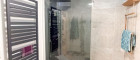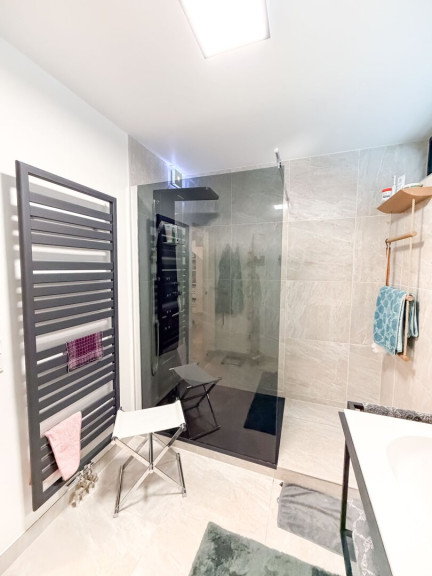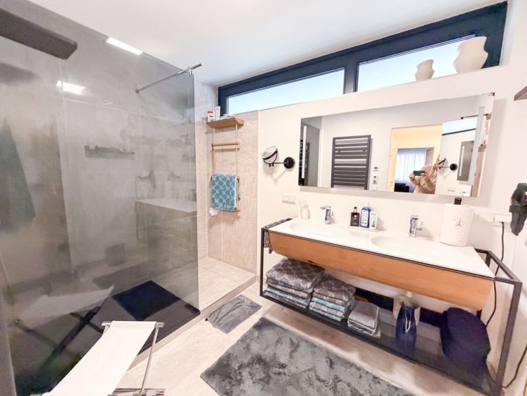 Badezimmer mit Dusche und Waschmaschinenanschluss