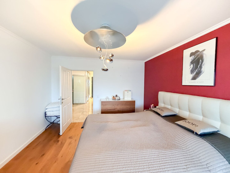 Schlafzimmer (15,88 m²) mit Zugang zur 11,30 m² großen Loggia