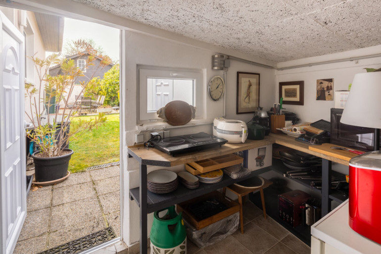 Zur Immobilie gehört zudem eine Garage mit automatischem Einfahrtstor. Hervorzuheben ist die an die Garage angebaute Outdoor-Küche, die sich ideal für gesellige Stunden im Freien anbietet.