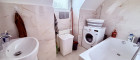 - Modernes Badezimmer mit Badewanne und Waschmaschinenanschluss.