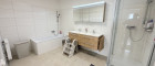 - Modernes großes Badezimmer mit Dusche und Bad.