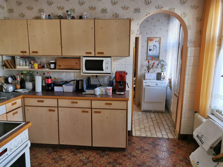 Die gerade aus zu erreichende Wohnküche ist mit einer Einbauküche eingerichtet und verfügt über einen Essplatz. Die Küche verfügt über einen Elektroherd und einen Geschirrspüler