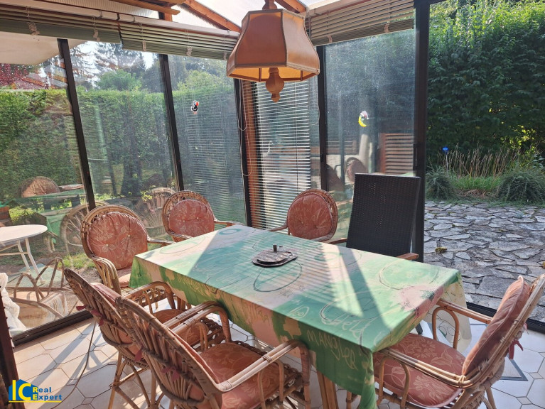 Die Haupträume sind nach Süden orientiert, ein großzügiger Balkon bietet Freifläche im Obergeschoss, im Erdgeschoss gibt es neben einem Wintergarten noch eine schöne Terrasse, die vom Wohnzimmer zu begehen ist. Im Erdgeschoss findet sich ein großer Wohnsalon mit Essplatz und offener Küche, ein Arbeitszimmer, ein Hobbyraum, ein Technikraum und eine Speis.