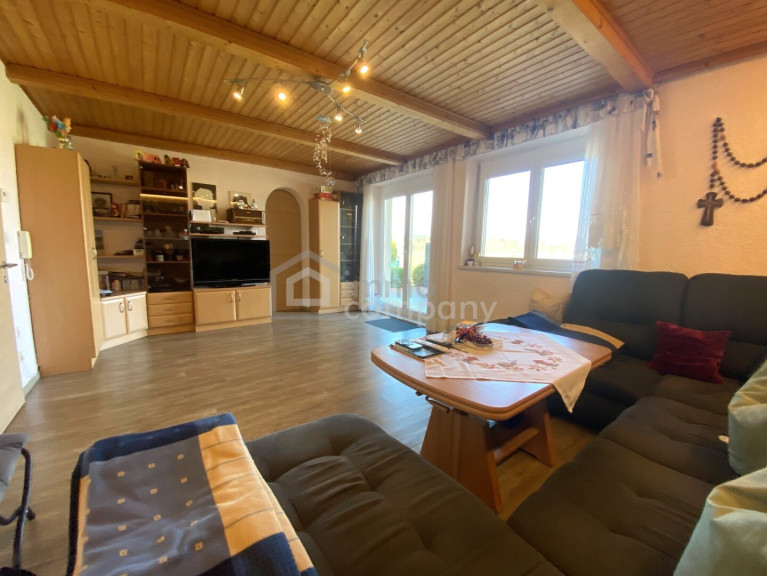 Das geräumige Wohnzimmer bietet viel Platz zum Entspannen und besticht durch den direkten Ausgang auf die sehr große Terrasse – perfekt für gemütliche Stunden im Freien oder gesellige Abende mit Familie und Freunden.