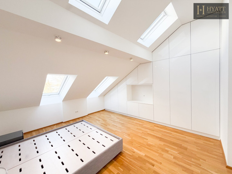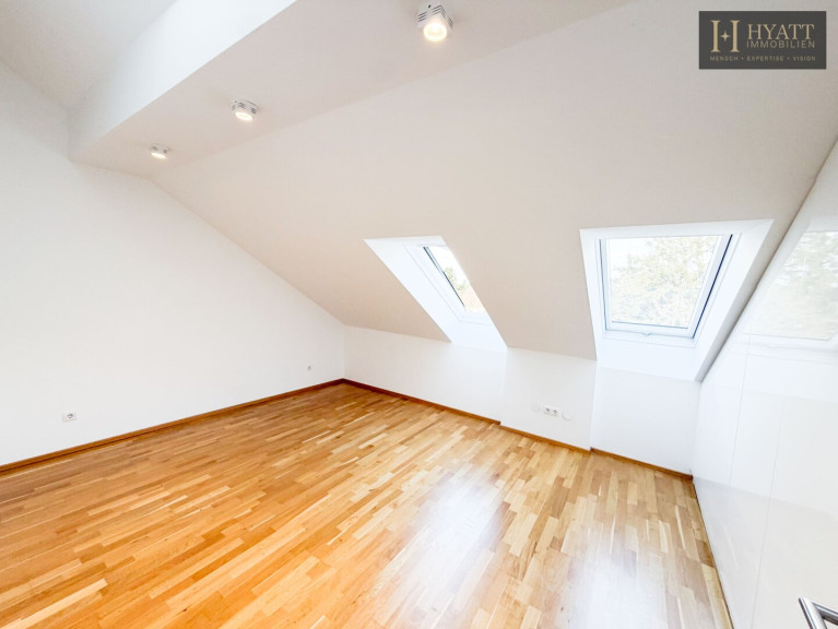 Ergänzend stehen im Eingangsbereich eine Garderobe (3,07 m²) sowie ein separates WC (1,97 m²) zur Verfügung, was den Wohnkomfort zusätzlich erhöht. Die Raumhöhen variieren je nach Dachlage und erreichen im Wohnbereich und Teilen der Zimmer bis zu 3,80 m, wodurch ein angenehmes, luftiges Dachgeschossgefühl entsteht.