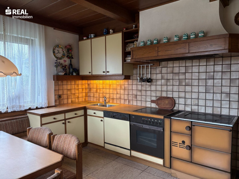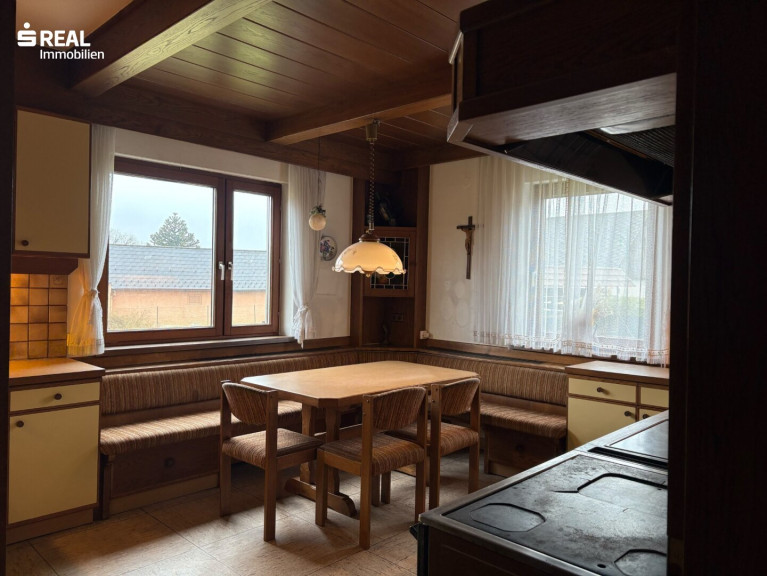 Das Haus wurde 1963 errichtet. Direkt beim Hauseingang befindet sich rechts ein separates WC. Eine Treppe führt in den Wohnbereich des Erdgeschosses. Hier erwartet Sie eine gemütliche Küche mit einem praktischen Küchenofen, einer einladenden Eckbank und reichlich Stauraum. Das helle Wohnzimmer besticht durch seine freundliche Atmosphäre und bietet Zugang zur Terrasse, auf der Sie den Blick über den Garten genießen können. Zusätzlich befinden sich im Erdgeschoss drei Schlafzimmer sowie ein Badezimmer mit Dusche.