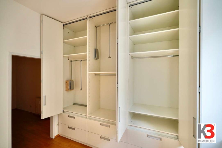 Das Schlafzimmer ist ausgestattet mit einem praktikablen Schranksystem, welches viel Platz bietet. Der helle, offen-freundliche Wohn- Küchen-Essraum, das Herzstück der Wohnung ist durch seine Raumhöhe sehr gefällig. Die Einbauküche ist ausgestattet mit jeglichem Komfort und Markengeräten. An der gemütlichen Bar lässt sich der Kaffee genießen.